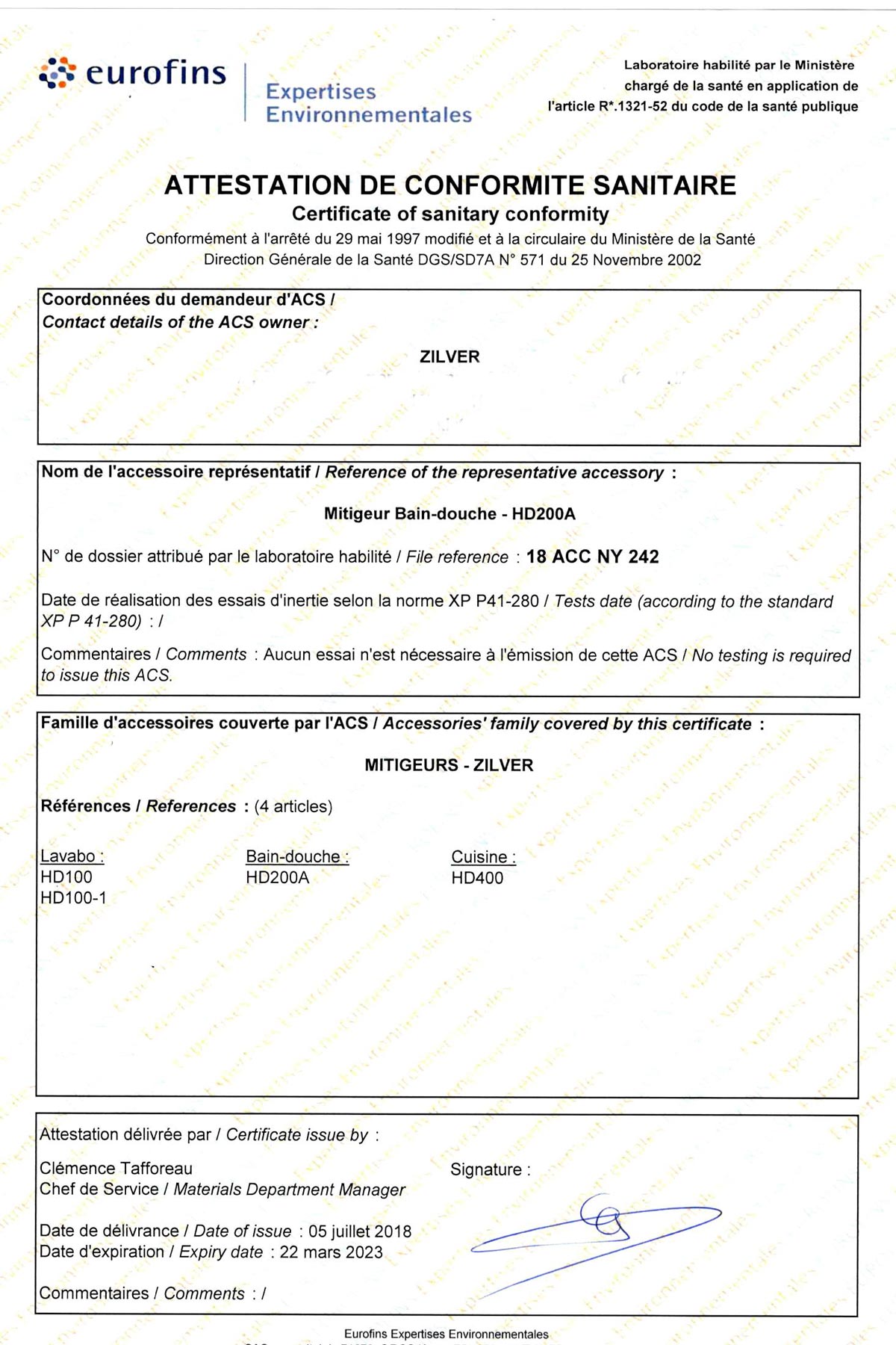 The quality of Zilver is administrated according to the International Quality Standards. Achieved another milestone by acquiring ACS Certificate from EURO FINS.